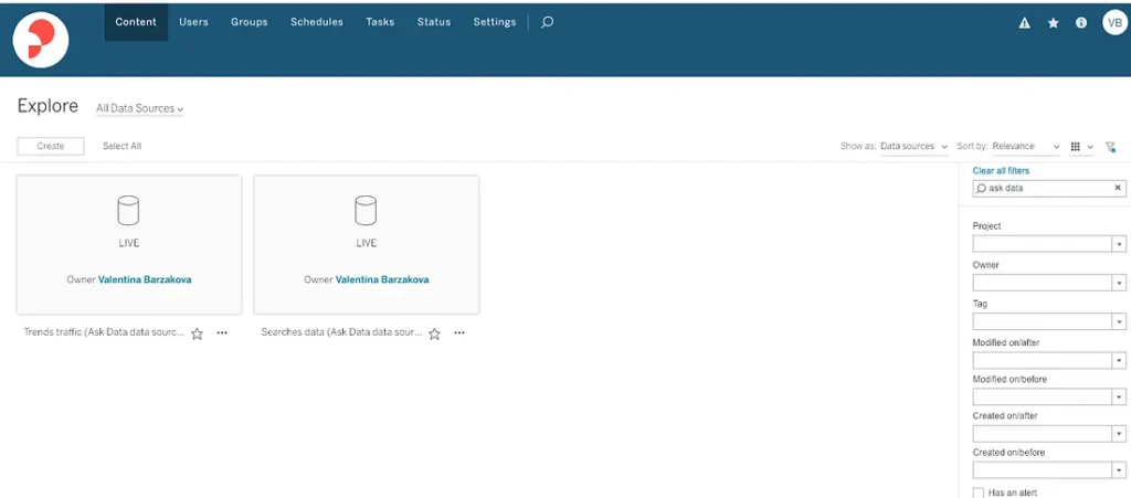 Search for the data sources optimized to Ask Data (when creating the data sources it is good practice to add a tag, e.g. ‘Ask Data’, to help users identify them) and click on the source you are interested in: