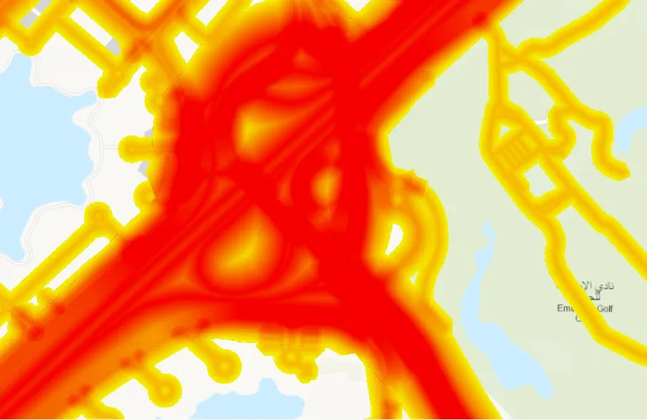 Whilst this is useful for visualisation purposes, there is also further use for it. Each pixel within the surface created (the red/orange seen above) is actually indicating a value in decibels. This means that the values from the surface can be extracted and used as input variables for our data models e.g property pricing indexes. It can also be quantified against a value the consumer would be able to relate to (e.g. dark orange = 70–80 decibels: automobile interior or telephone bell).