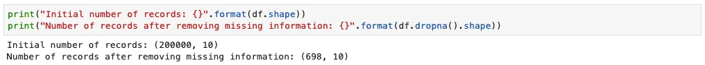 Regarding missing information (and since we are aiming for a fast solution) one way could be to drop every row that contains at least one missing element. This is not a good practice and below you can see why: