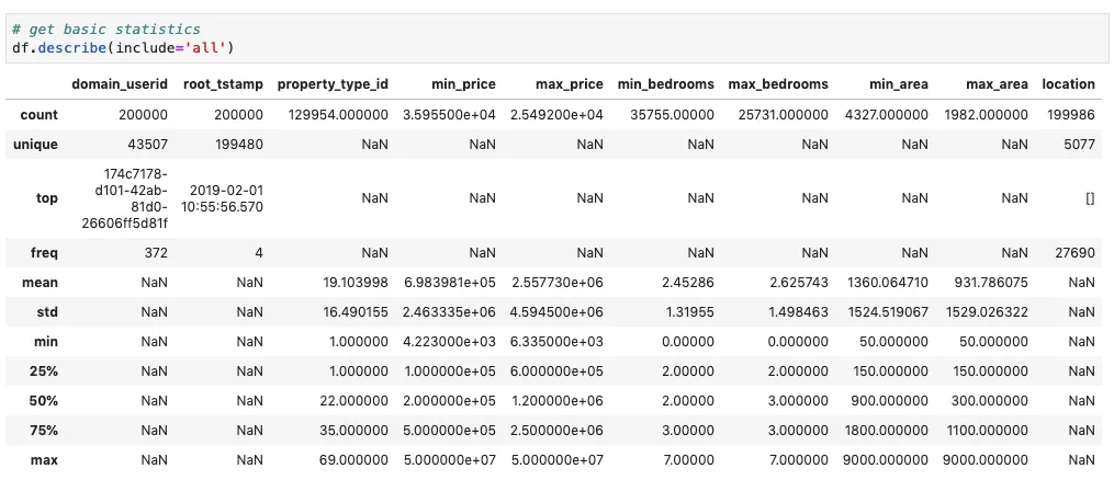 By running 5 one-liners we get a clear picture of the dataset. For example, we now know that: