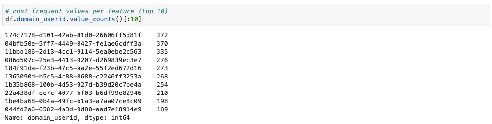 - Creating a new DataFrame that contains only the domain_userid and the target we constructed above. Then, we group by the domain_userid and aggregate by taking the average of each user’s prices.